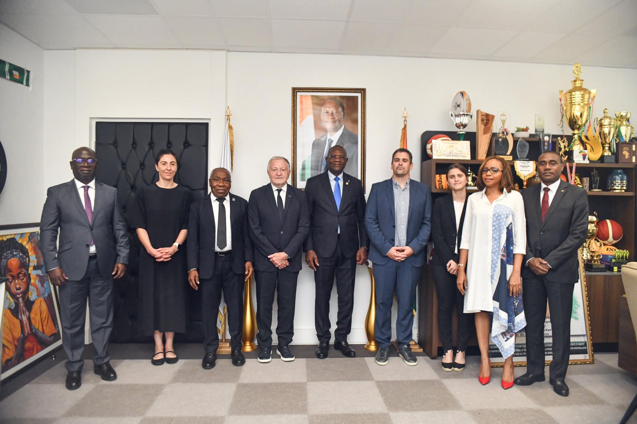 Jean-Michel AULAS, emblématique président de l’Olympique Lyonnais, de 1987 à 2023, désormais au service de la Fédération française de football (FFF), a au cours de cet échange avec le Ministre délégué, mis en avant les relations fraternelles entre la Côte d’Ivoire 🇨🇮 et la France 🇫🇷. Il a surtout évoqué le développement et l’organisation d’activités à vertus sociales, économiques et sportives. D’où le choix de la Côte d’Ivoire pour l’organisation du Trophée des Championnes en 2026, un match à fort potentiel en terme d’exposition médiatique et sportive.