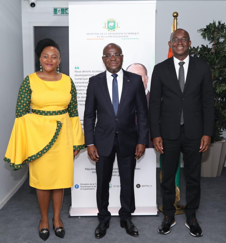 Accompagné par son prédécesseur M. Djibril Ouattara, Mme N’Gambi a échangé avec le ministre Kalil Konaté sur les problématiques du secteur des télécommunications.