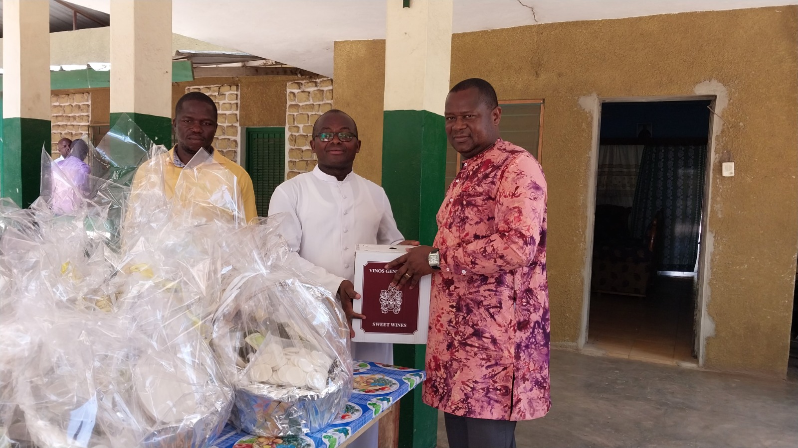 Ces dons sont composés entre-autres de 6 paniers complets renfermant les objets destinés à la célébration des messes (encens, hostiles, bougie de siège,…) ainsi que des vins de messe. Recevant ces dons, le Curé dit avoir apprécié à leur juste valeur l’importance de ces dons. Au nom de ses pairs des paroisses de Doropo, Téhini et Nassian , l’Abbé Apollinaire a remercié le donateur et dit des bénédictions à son égard.