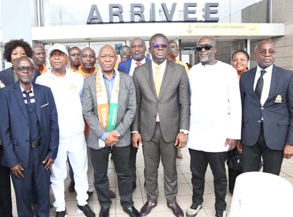 À son arrivée à l’aéroport international Félix Houphouët-Boigny, il a été reçu par le Chef de Cabinet Philippe Kragbé, représentant le ministre des Sports et du Cadre de Vie, en présence du mouvement sportif, des médias et de nombreux supporters réunis sous la bannière du CNSE.
