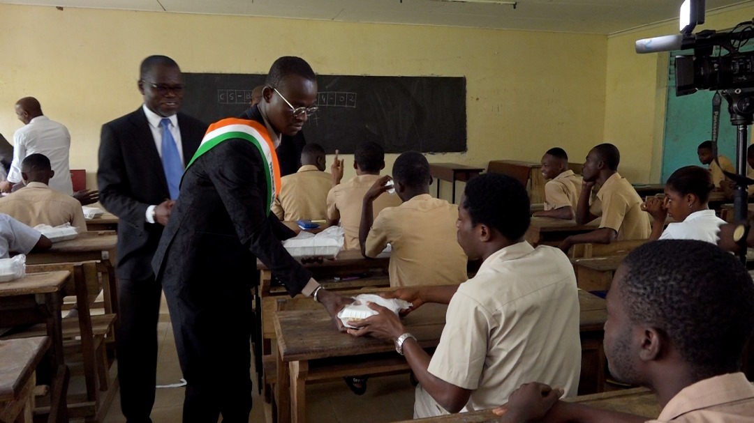 Selon le Ministère de l’Éducation Nationale, le taux de réussite au baccalauréat en Côte d’Ivoire était de 32,09 % en 2023. Conscient de cette réalité, le PJCI ANYAMA a distribué 1270 kits alimentaires sous la supervision de Madame Gla Sanamata St Claire, Directrice Régionale de l’Éducation Nationale et de l’Alphabétisation Abidjan 4, et de Monsieur Djatty Yao Gaston, Proviseur du Lycée Moderne d’Anyama. Les kits, distribués à midi, ont pour but d’offrir une alimentation équilibrée aux élèves, leur fournissant ainsi l’énergie nécessaire pour aborder les examens avec sérénité pour un résultat plus satisfaisant.