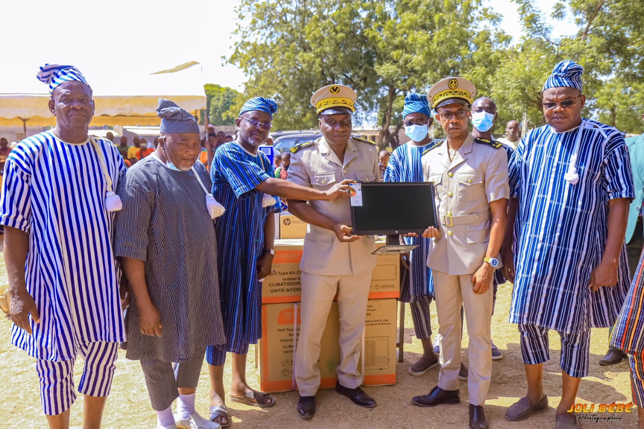 Le Dr Michel NOUFE, Cadre du Bounkani et par ailleurs Directeur des Moyens Généraux du Trésor a fait parler son cœur. Il a offert un ordinateur complet avec imprimante, un split, et des fournitures de bureau pour équiper le bureau du tout nouveau Sous-préfet de Kalamon, à la grande joie de sa Majesté NIGUE Gliman, Roi du Bounkani et de l’ensemble de l’assistance.