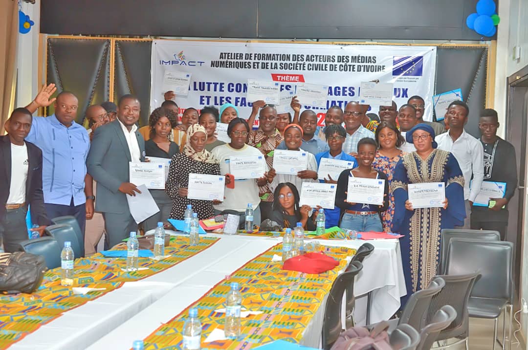 Dans le cadre de la mise en œuvre du projet d’Implication des Médias numériques pour une Prévention Active des Conflits et des Tensions (IMPACT), le Réseau des Professionnels de la Presse en Ligne de Côte d’Ivoire (REPPRELCI), en collaboration avec ses partenaires, a organisé un atelier de formation des acteurs des médias numériques et de la société civile de Côte d’Ivoire les 27 et 28 Juillet 2023, à Yamoussoukro sur le thème : « La Lutte contre les Messages Haineux et les Fausses Informations ».