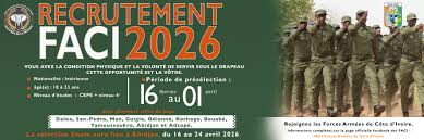Un recrutement militaire s’effectuera à partir du 16 février 2026 en Côte d’Ivoire. Il s’agit d’un recrutement de militaires du rang. Il se fera en faveur des Forces armées de Côte d’Ivoire (FACI).
