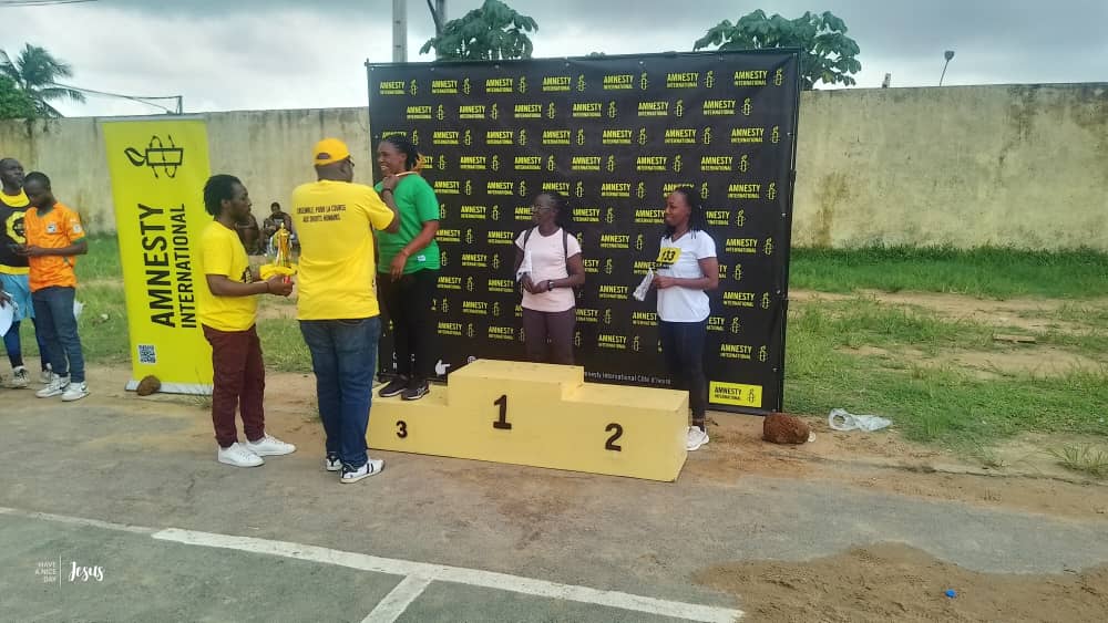 Les vainqueurs de chaque catégorie ont reçu des trophées et des lots. Parmi eux, Zro Daplé Roger, membre d’Amnesty International, s’est distingué en remportant le 2ᵉ prix dans la catégorie homme 5 km :