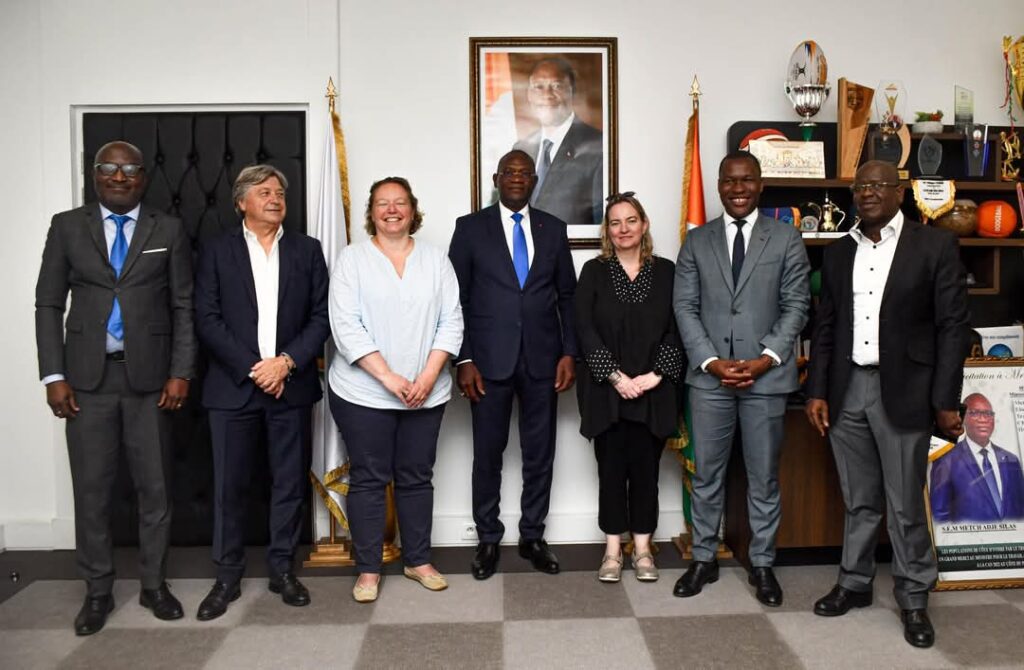 Abidjan, le 21 mai 2025 – Le Ministre délégué en charge des Sports et du Cadre de vie, Adjé Silas METCH, a reçu en audience Monsieur Kanaté Ali, président de la Confédération internationale des unions sportives francophones (CUSF), accompagné de Madame Guerié, Directrice de l’Ensemble scolaire de l’Immaculée Conception, basé à Espalion en France.