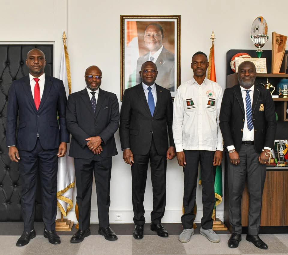 Le Ministre délégué en charge des Sports et du Cadre de vie, Adjé Silas METCH, a reçu en audience, ce mardi 20 mai 2025, à son Cabinet à la Tour A d’Abidjan, Dr Christian Emeruwa, chef du département sûreté et sécurité à la Confédération africaine de football (CAF).