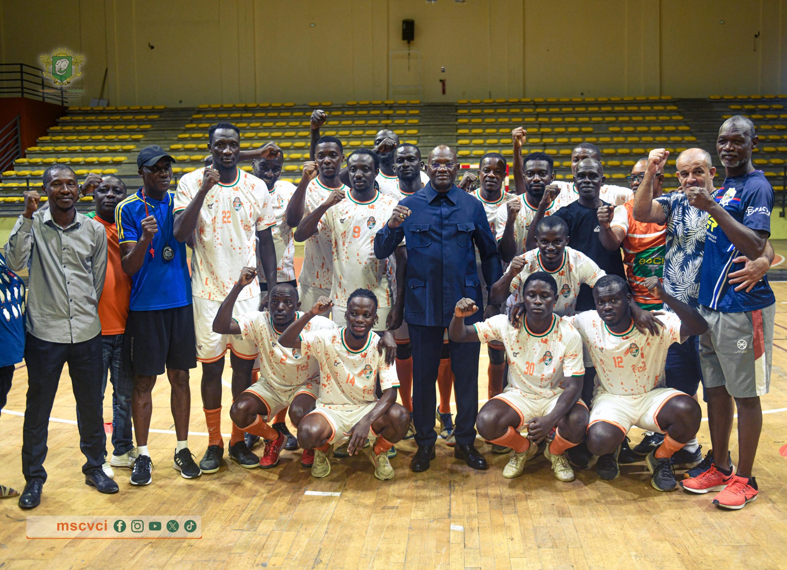 Dans le cadre des préparatifs de la 11ème édition de la Coupe d’Afrique de Maracana, prévue du 29 septembre au 7 octobre 2025 en Guinée-Bissau 🇬🇼, les Éléphants 🐘 Maracaniers ont reçu la visite de Monsieur Adje Silas METCH , Ministre délégué des Sports et du Cadre de Vie, à leur base d’entraînement, située à la salle Polyvalente du Palais des Sports de Treichville.