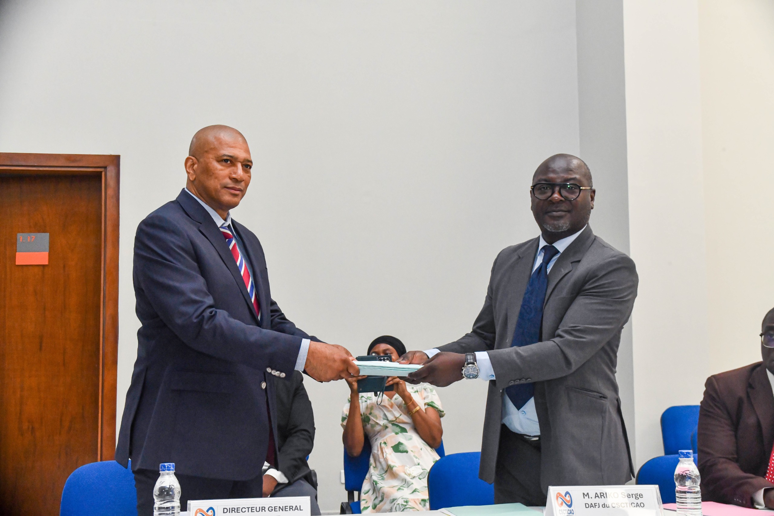 Après la lecture du procès-verbal, M. TOURÉ Nimbo a officiellement procédé à la passation de charge entre M. ARIKO Serge et M. REMARCK Abdoulaye Patrice.
