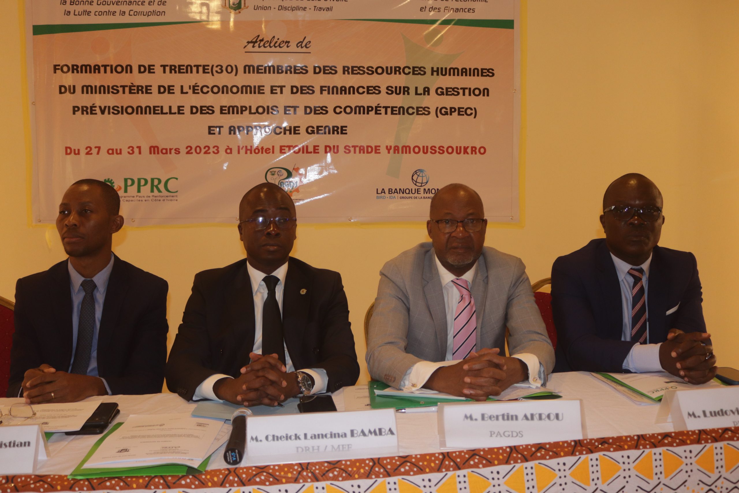 A la suite des différentes allocutions prononcées notamment par Monsieur Ludovic KOUAME, Coordonnateur sectoriel représentant Madame Cynthia CURTIS, Coordonnateur national du PPRC, Monsieur Sina BAMBA, Directeur Général du Cabinet INFO’BUR Consulting et Monsieur Bertin AKROU, Coordonnateur Adjoint, représentant Madame Madeleine YAO, Coordonnateur du PAGDS, Monsieur DIGBE SERY Christian a ouvert au nom du Ministre de la Promotion de la Bonne Gouvernance et de la Lutte contre la Corruption cet atelier de formation de cinq (5) jours.