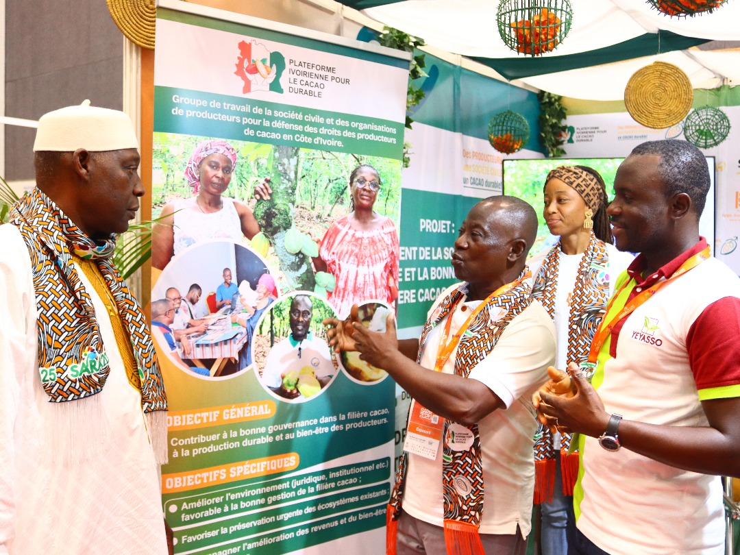 La coopérative Yéyasso, basée à Man, a pris part à la 7e édition du Salon International de l’Agriculture et des Ressources Animales (SARA 2025), grâce à l’appui d’Inades-Formation Côte d’Ivoire. Cette participation s’inscrit dans le cadre de son appartenance à la Plateforme Ivoirienne pour le Cacao Durable (PICD), un regroupement d’acteurs engagés pour la promotion des droits des producteurs de cacao en Côte d’Ivoire.