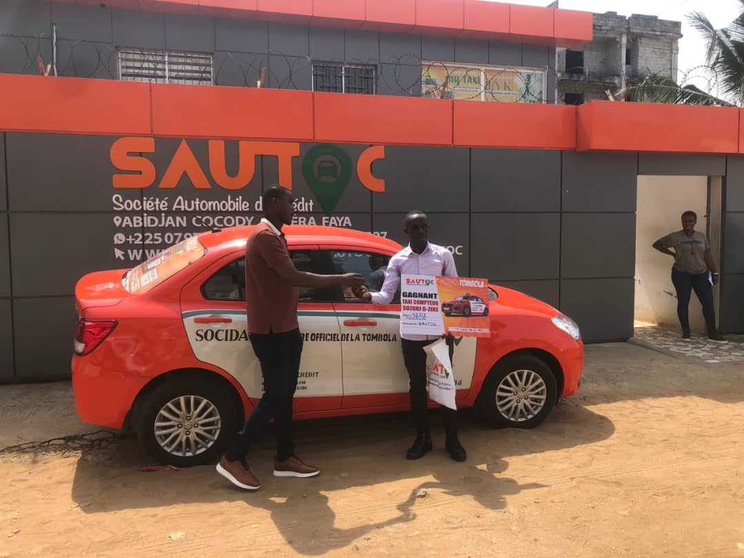 Annonce faite au cours de la cérémonie de récompense des personnes dont les numéros ont été tirés au sort sur 1000 participants à l’issue de cette tombola lancée par la Société Automobile de Crédit ( SAUTOC) .
